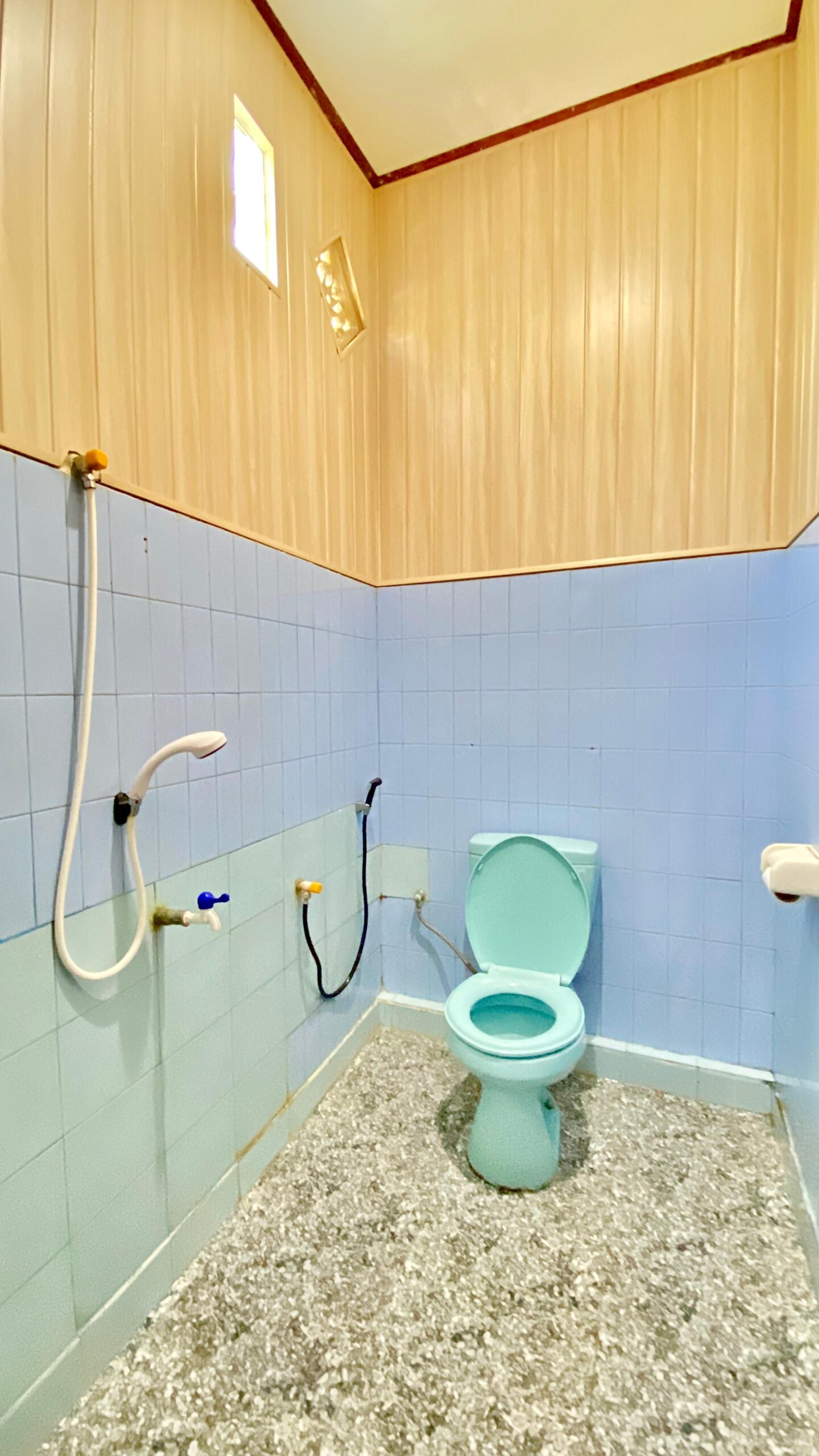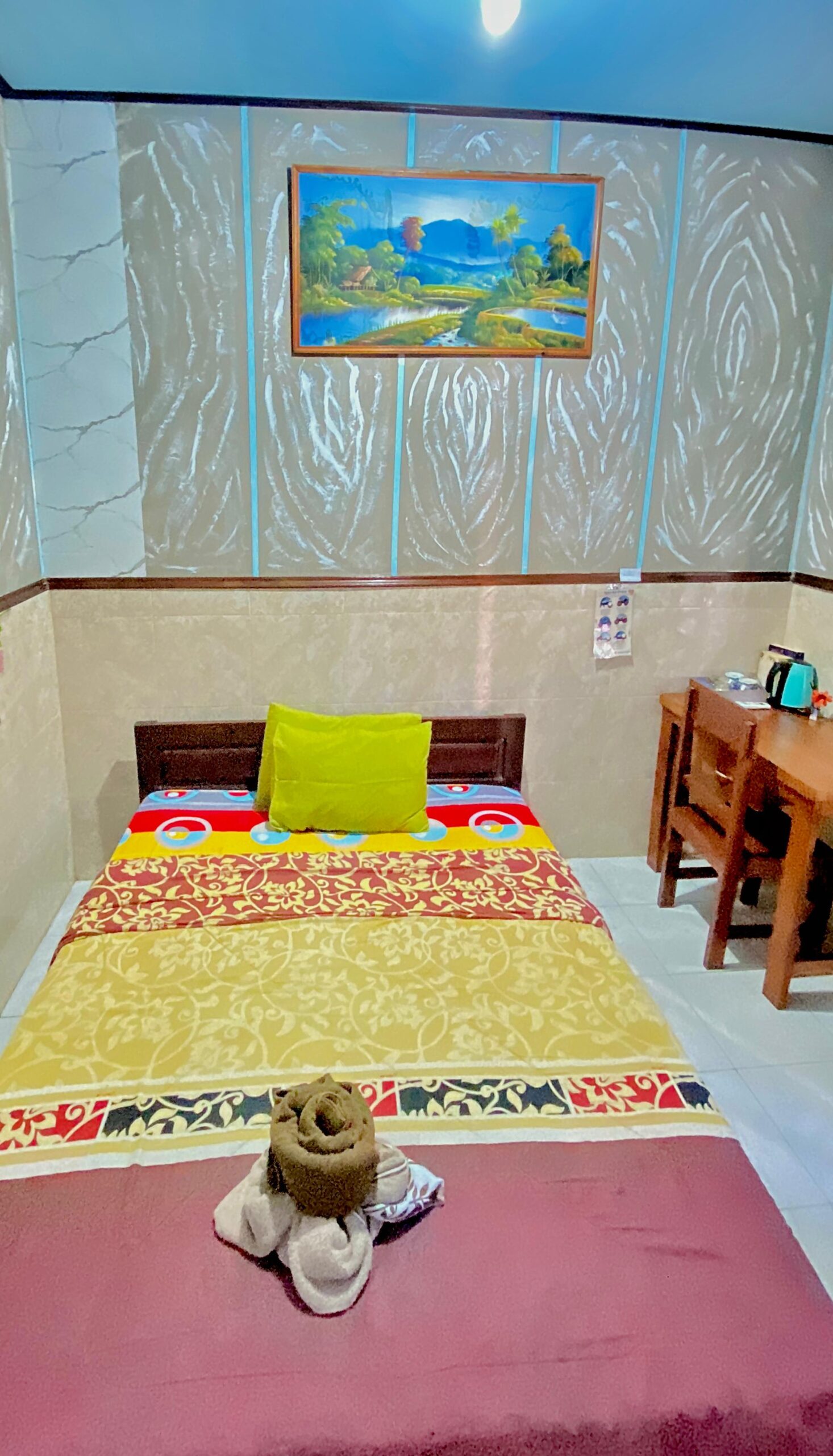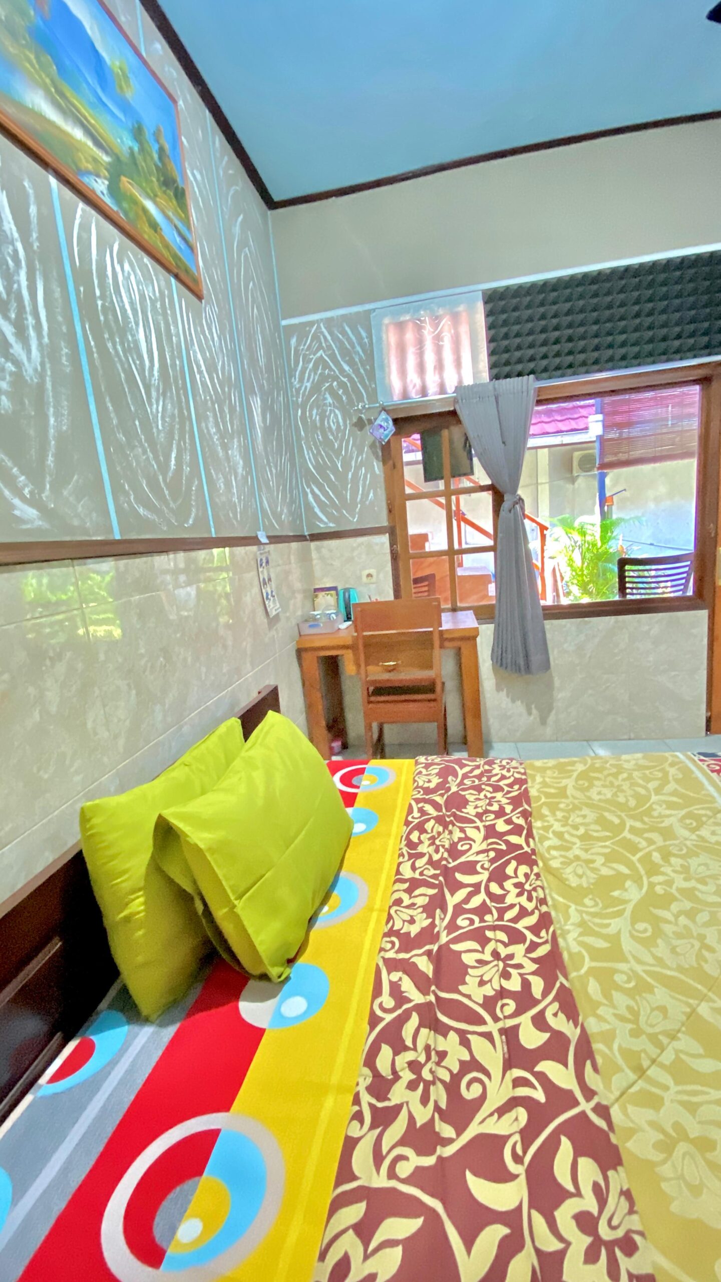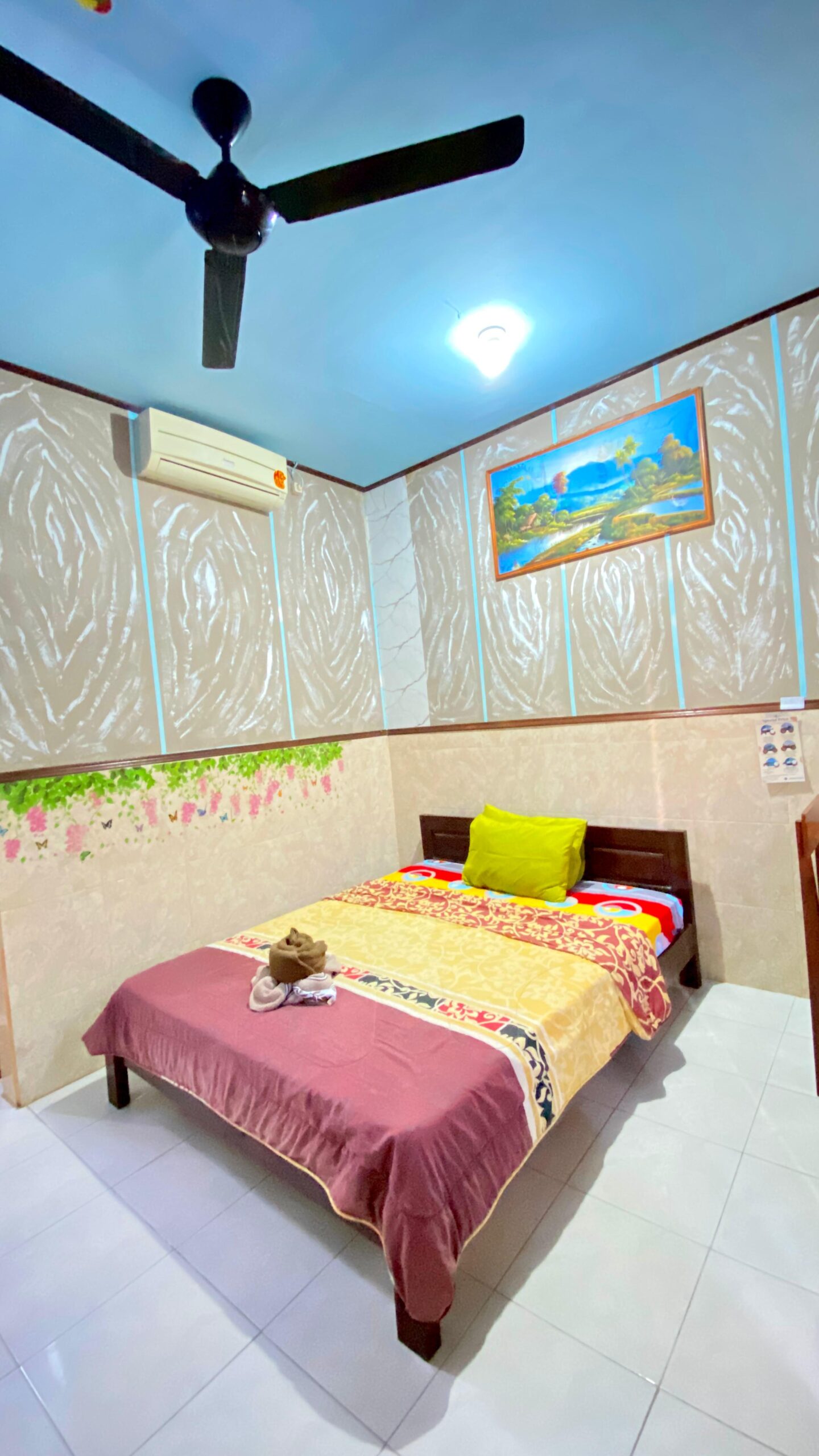 Kamar yang terletak di lantai dasar dengan teras di depan kamar, dilengkapi dengan AC dan kipas angin serta ketel listrik untuk membuat air panas.